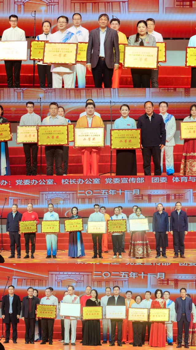 本场晚会由学校党委主办,校工会承办,党委(校长)办公室、党委宣传部、校团委、体育与艺术学院协办,整个筹备工作历时六个月,得到了学校领导、各相关部门、各学院和各分工会的大力支持。(文/王敏 图/罗小妹)