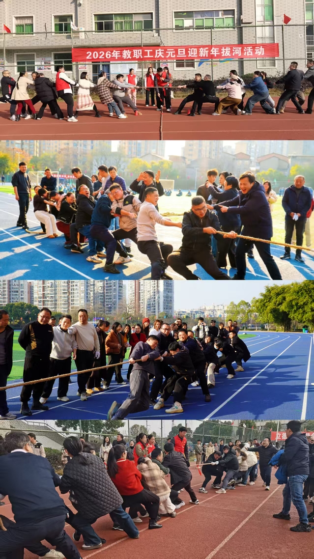 为深入贯彻健康中国建设要求,丰富教职工文体生活,凝聚学校发展合力,12月30日,我校2026年教职工庆元旦迎新年拔河活动在昌抚两校区田径场同步开展,吸引全校25各分工会踊跃参与。
